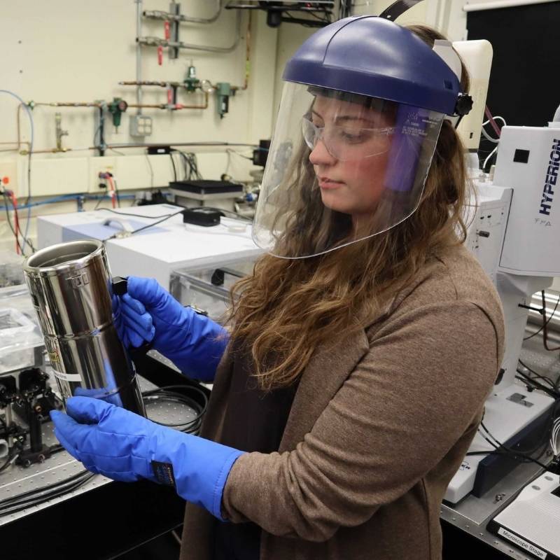 Grace Flaman, an associate scientist at the Mid-IR beamline, loves working in an environment that brings together staff and users with such a wide range of backgrounds and technical expertise. “I’m a curious person,” Grace says. “I like solving problems. I’m happiest when I don’t know what’s going on, because then I have to figure things out. We have a really, really cool stewing pot of people working together here.”