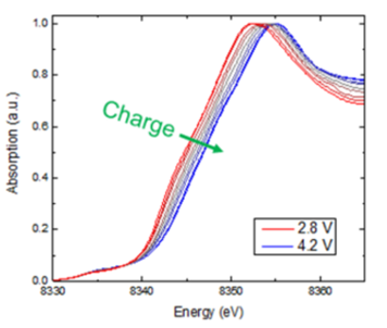 X-ray absorption spectroscopy (XAS) provides information on the chemical and electronic environment of specific elements, which can be used to identify different chemical species present in a sample. Some information is provided directly (like the oxidation state of a particular element) while other information can be obtained using fingerprinting methods and standards. Some examples of how we use XAS include determining the species of arsenic present in mine tailings and monitoring the oxidation/reduction of elements in a battery electrode.