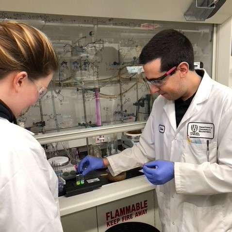 By Victoria SchrammDr. Simon Rondeau-Gagne (right) and student Madison Mooney at work in the lab.