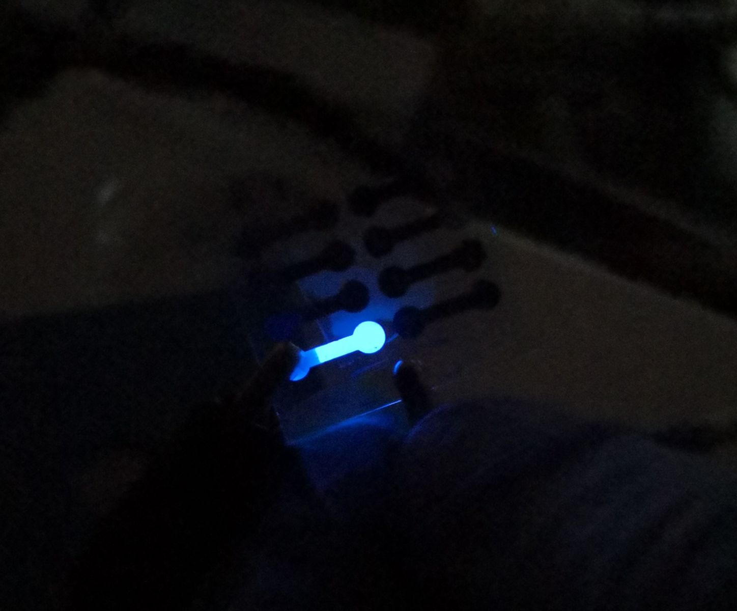 By Victoria MartinezThe blue quantum dot solution glows in a vial in a laboratory.