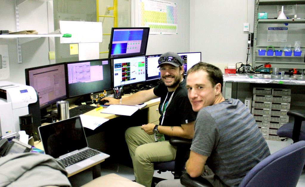 By Erin MatthewsScientists Simon Trudel (left), Oliver Calderon, and Martin Schoen conducting research at the CLS.