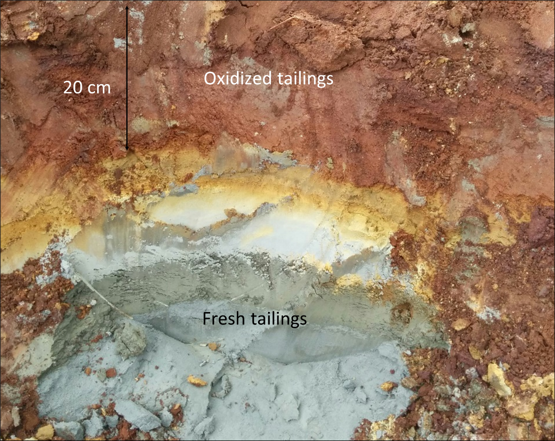 The team discovered the two samples were markedly different in their chemical and mineral makeup -- and in terms of the threat they pose to the environment. The shallower, weathered sample was acid-generating and groundwater within it contained metals in harmful amounts. However, the deeper sample, which was protected by a hardpan layer and thus not exposed to air or water, was neutral and therefore posed little environmental risk.